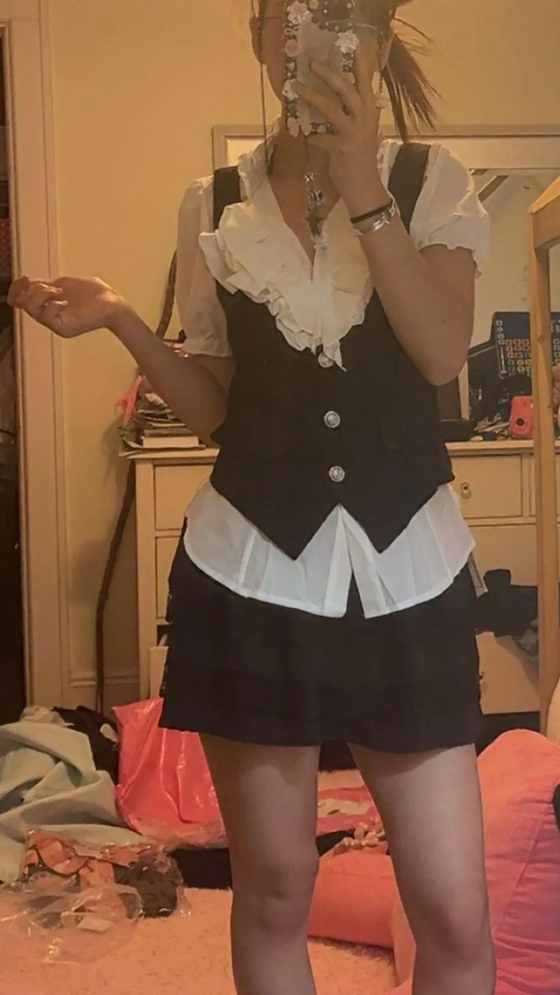 I love love this so much, i don’t have a picture with the skirt on tho, but it fits very nice too!