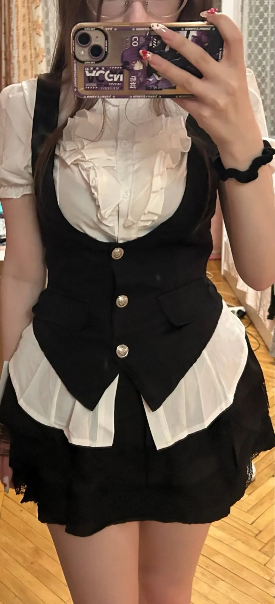 Super cute fit, got here real quick and while the material doesnt feel the best i just cant get over the cuteness of the outfit itself!