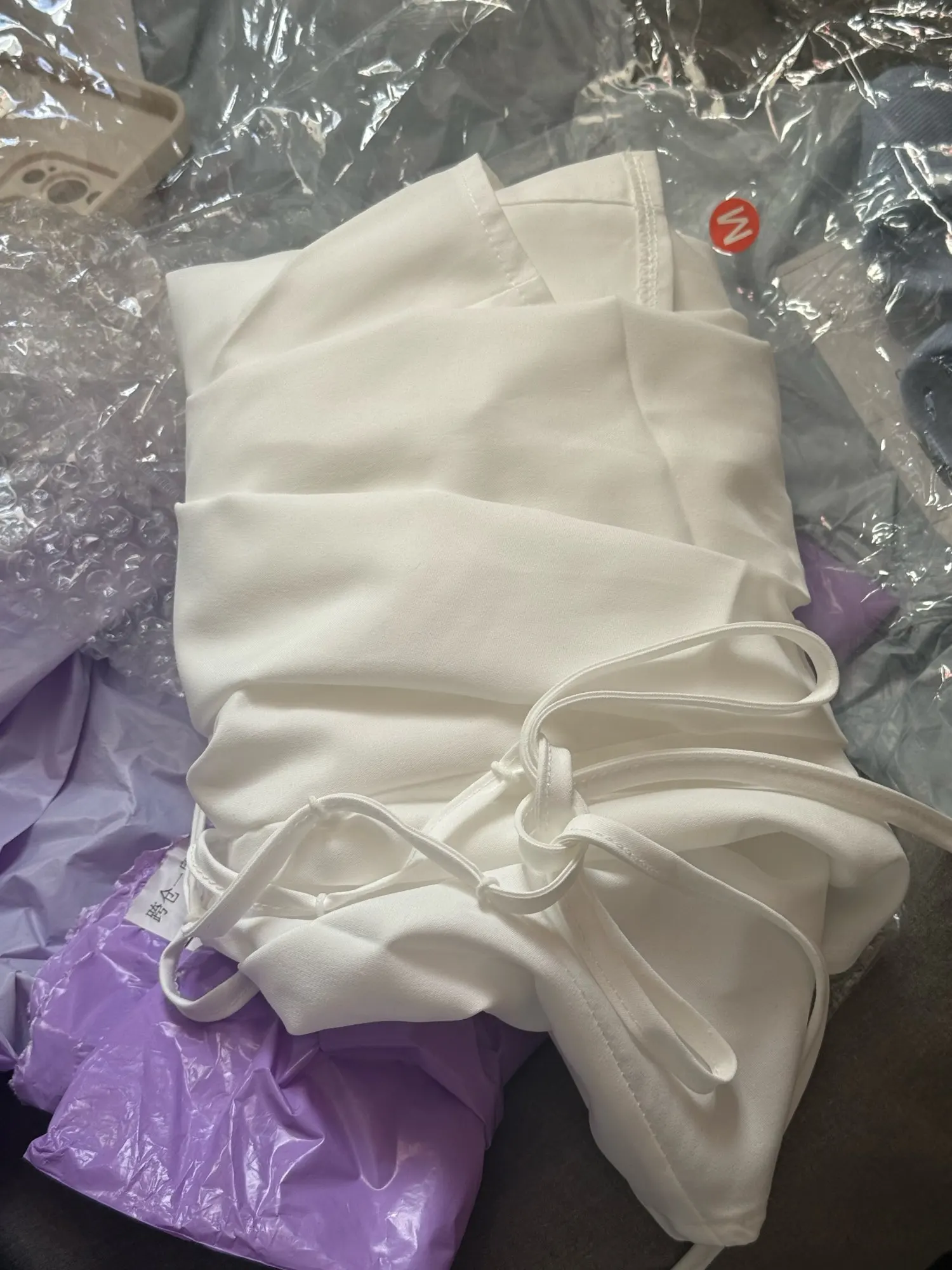 They sent some kind of puzzle, but I seem to have figured it out. For the money, it’s a good item, but tying it like in the picture will be difficult. It doesn’t run small, take your own size. Don’t pull it too tight, it will bunch up even more and look worse. The fabric on the chest slightly comes apart, but this can be fixed.