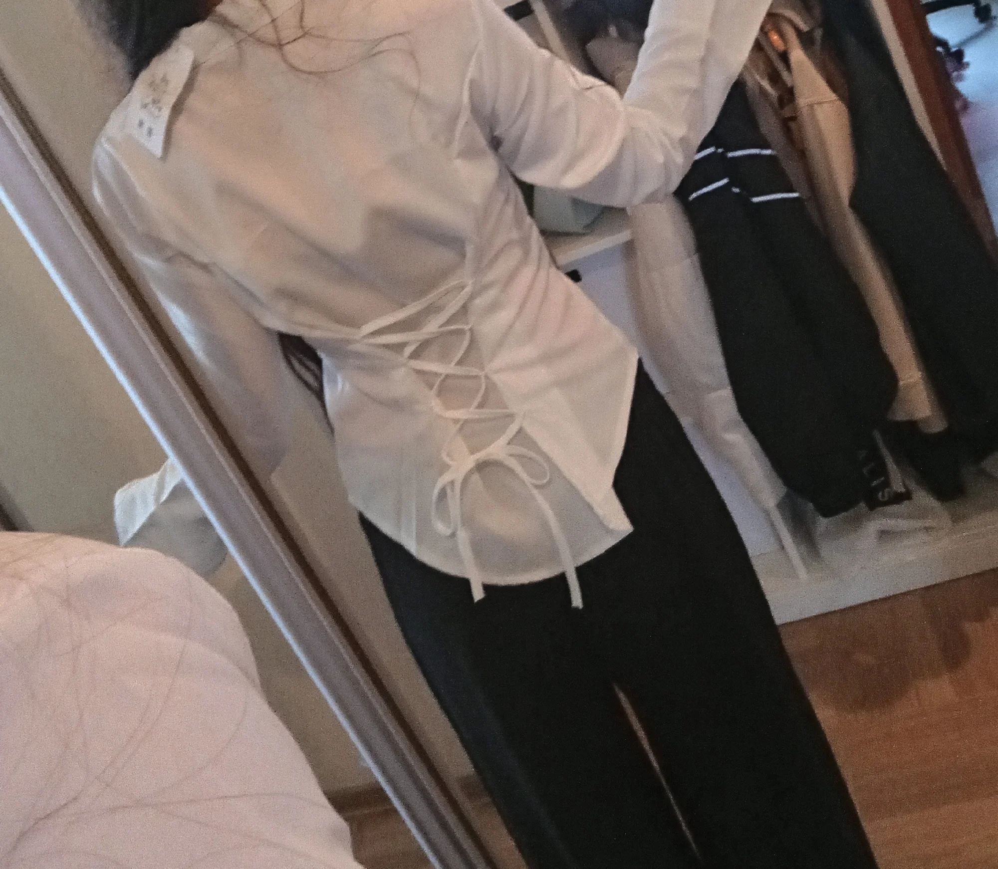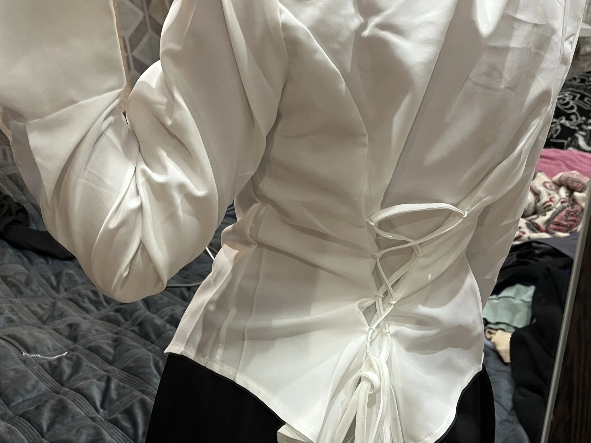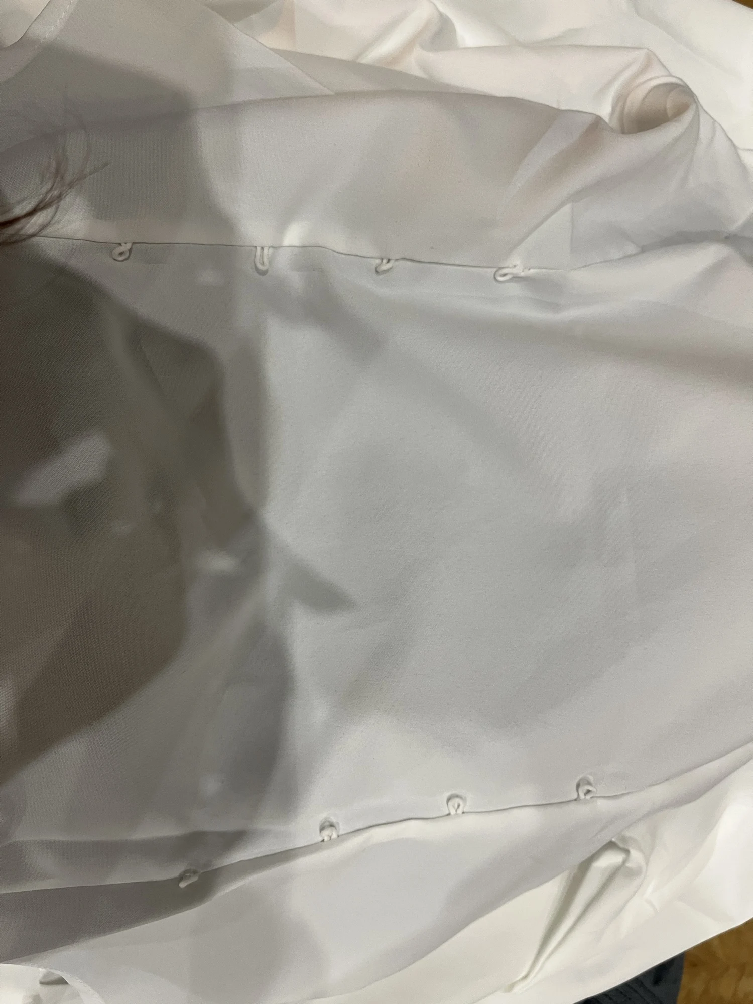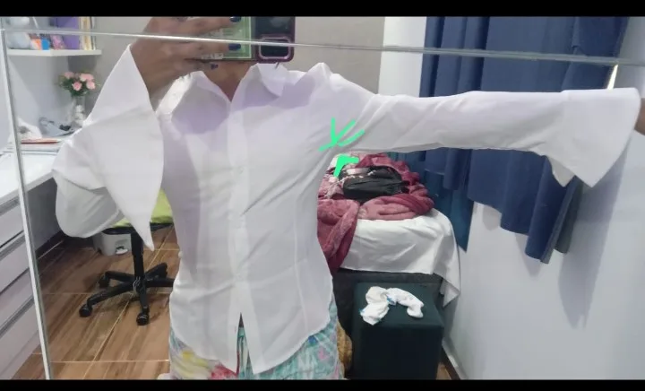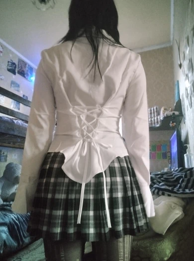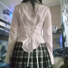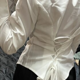 The shirt is good, fits well, but I didn’t expect there to be elastics at the back. Before putting on the shirt, I tightened the ties beforehand, but when I decided to tighten them more while wearing it, one of the elastics broke (third photo) :(( Besides the back, there are elastics on the sleeves for buttons. Consider this if you’re planning to buy a shirt. Also, I’m a bit afraid to raise my arms in it; perhaps I should have taken a larger size instead of M. I’m 158 cm tall, bust 83 cm, waist 66 cm, hips 89 cm, and shoulders 38 cm.