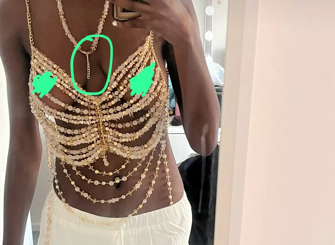 Chain Beading Jewelry Vest Hollow Out Top