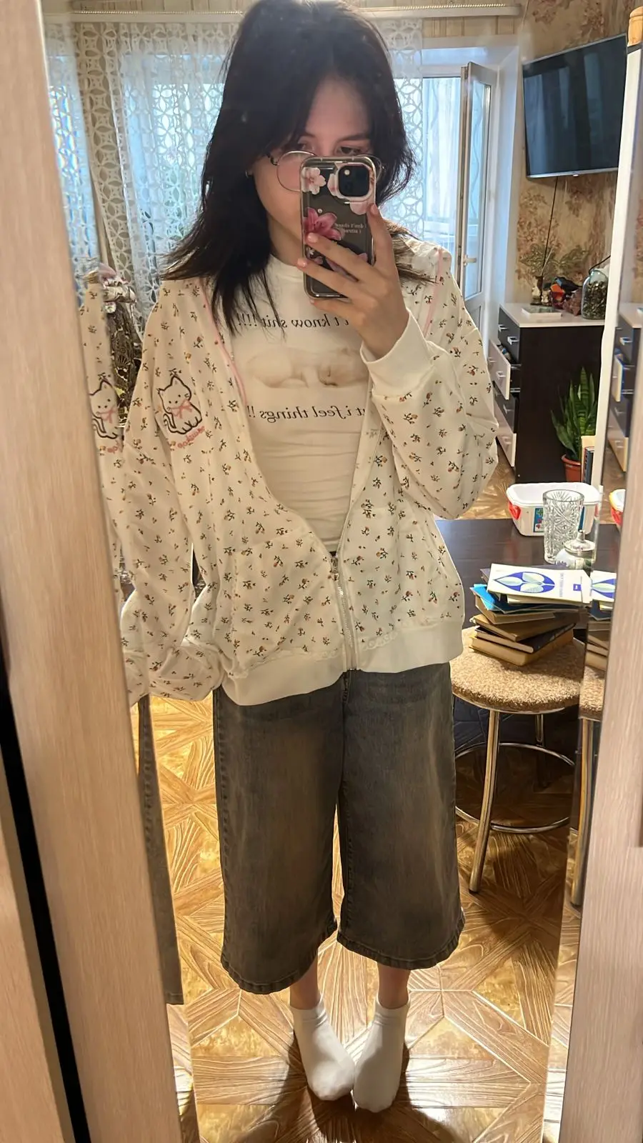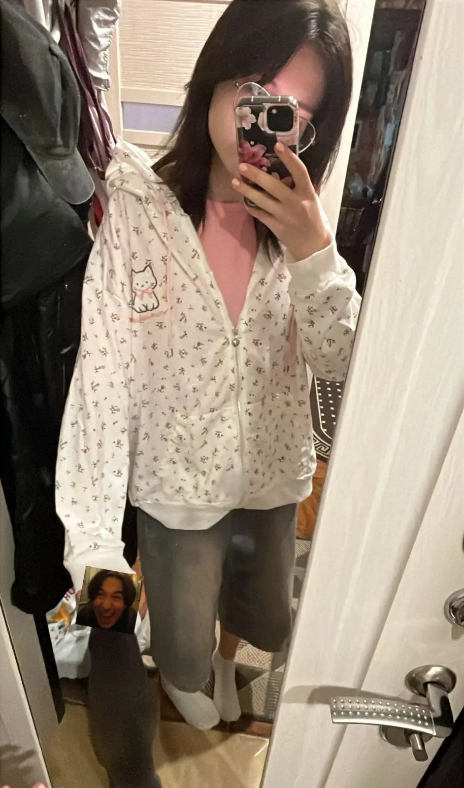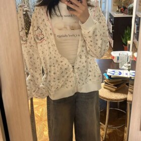 1 review for Floral Print Cat Embroidery Zipper hoodie