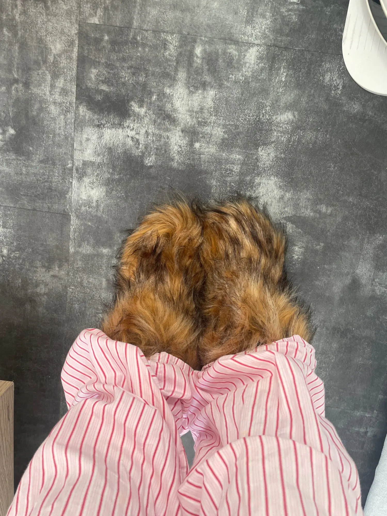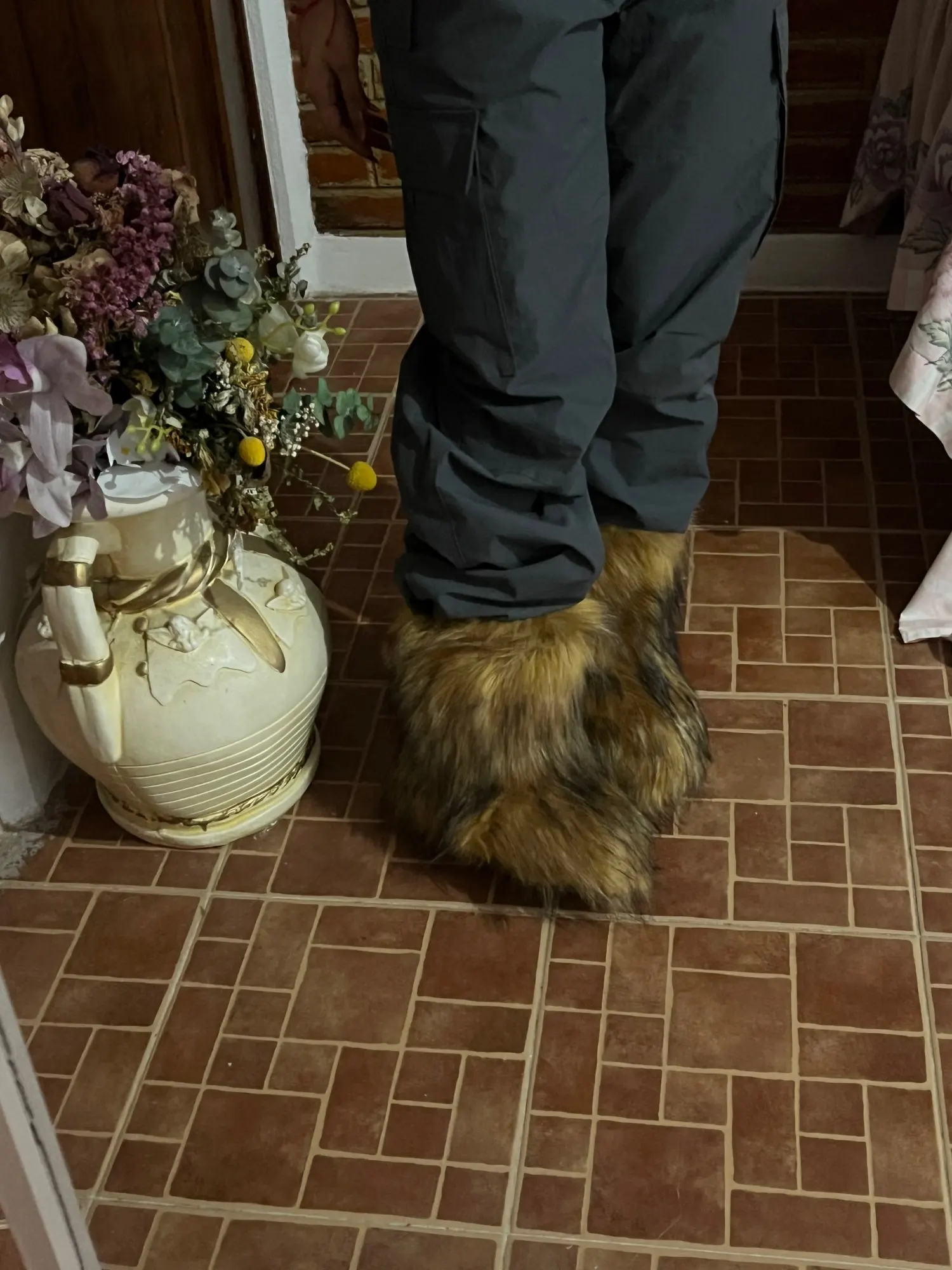 The actual item is cuter than expected!!! ! The hair is neither short nor long, it’s exactly the feeling I wanted~ (hair length about 5-6cm) I just opened the package and there are some creases from being pressed. I think it will be cuter if you comb it! The inside of the shoes is also fluffy and subtly warm. I’m very satisfied with the product I bought from Ali~~~ Highly recommended.