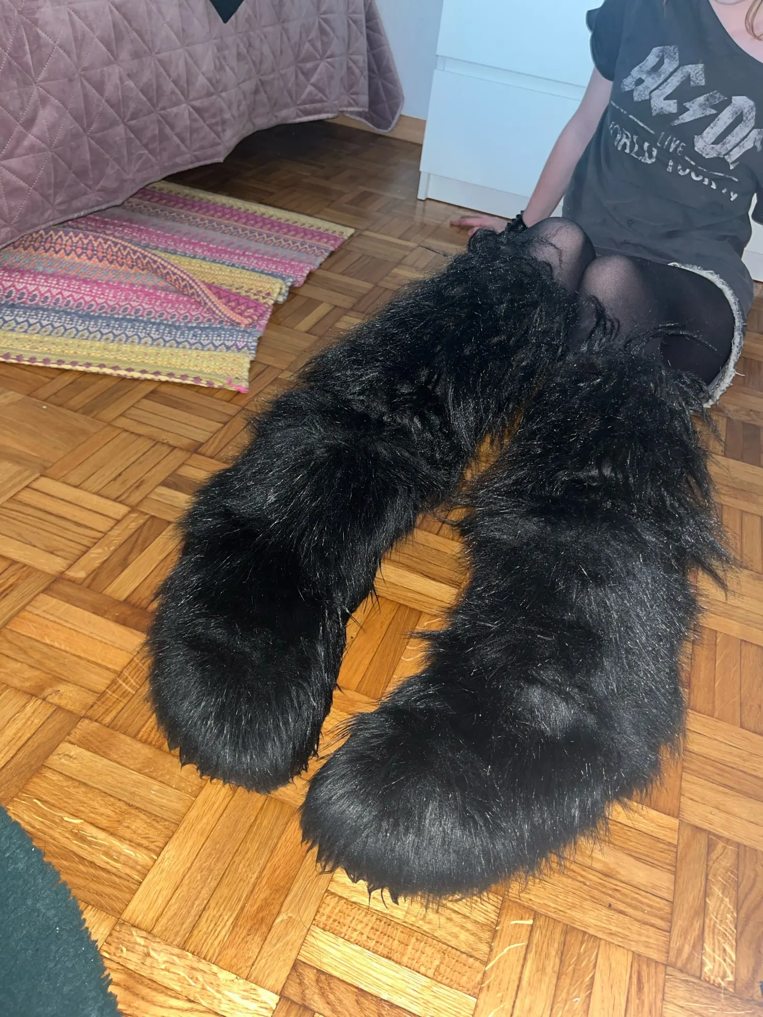 Super cute and affordable fuzzy rave boots! They run be very small, i’m a size 8 women’s and got the 39 and they’re snug but still good!