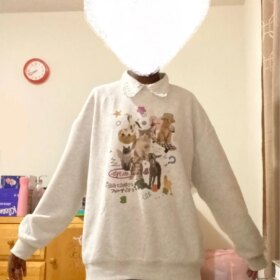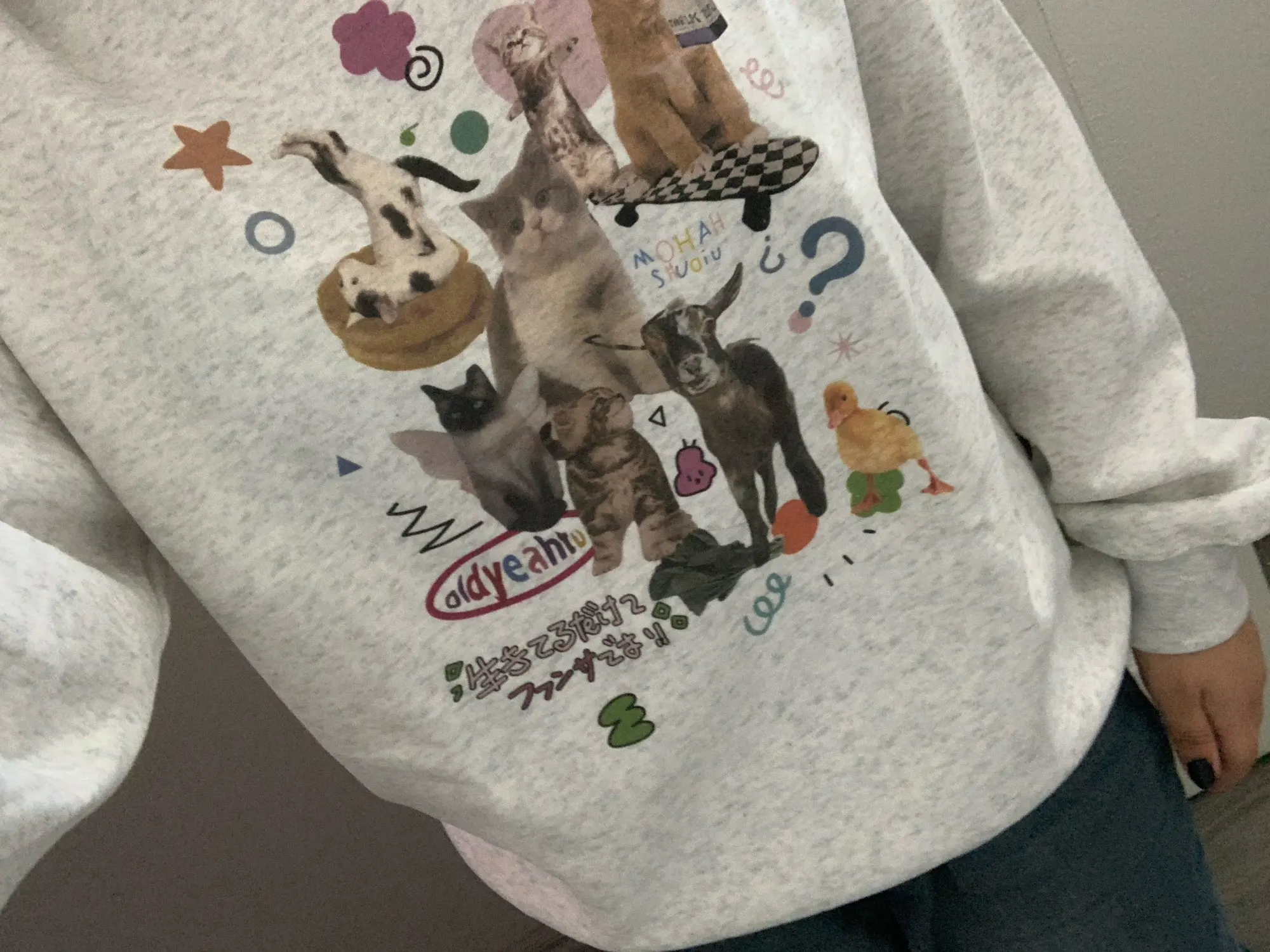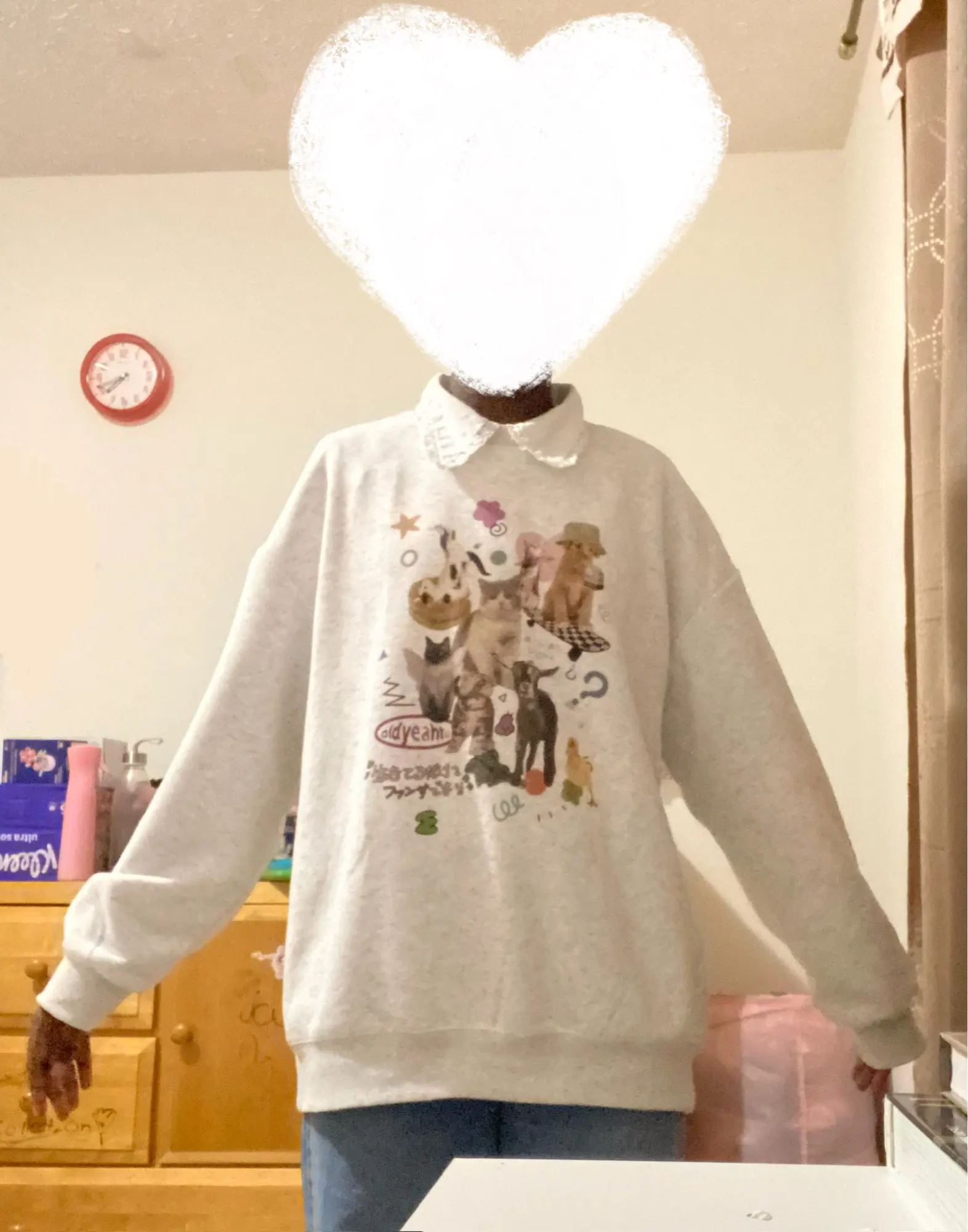 I love it sm!! It doesnt that heavy feeling like sweaters usually do, it has a cool feeling to it. The picture isnt sticker, it’s actually on there :3